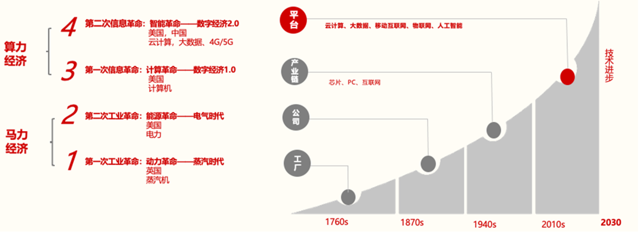 我稍微总结一下,按照发展动力学来看,主要是两个动力:一个是蒸汽机和电力的动力,一个是计算和智能的算力动力,从动力的角度来讨论经济、社会、政治、军事以及企业的发展。