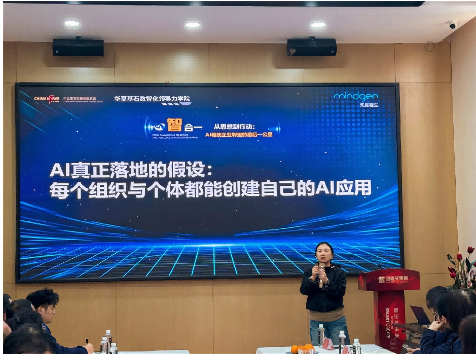 随后,曹朝霞老师为董事长杜延涛及全体高管进行了AI在企业应用落地的专题分享。曹朝霞老师从管理+AI的创新视角,阐述了人工智能技术在企业经营管理中的应用价值和实践路径,为新雅轩的数字化转型和智能化升级提供了前瞻性思路。