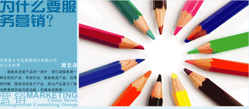 - “服务营销,就是文化、理念营销,将我们的理念灌输到消费者及用户身上,让他们相信我们的服务理念好,是个走在时代前列的公司!”