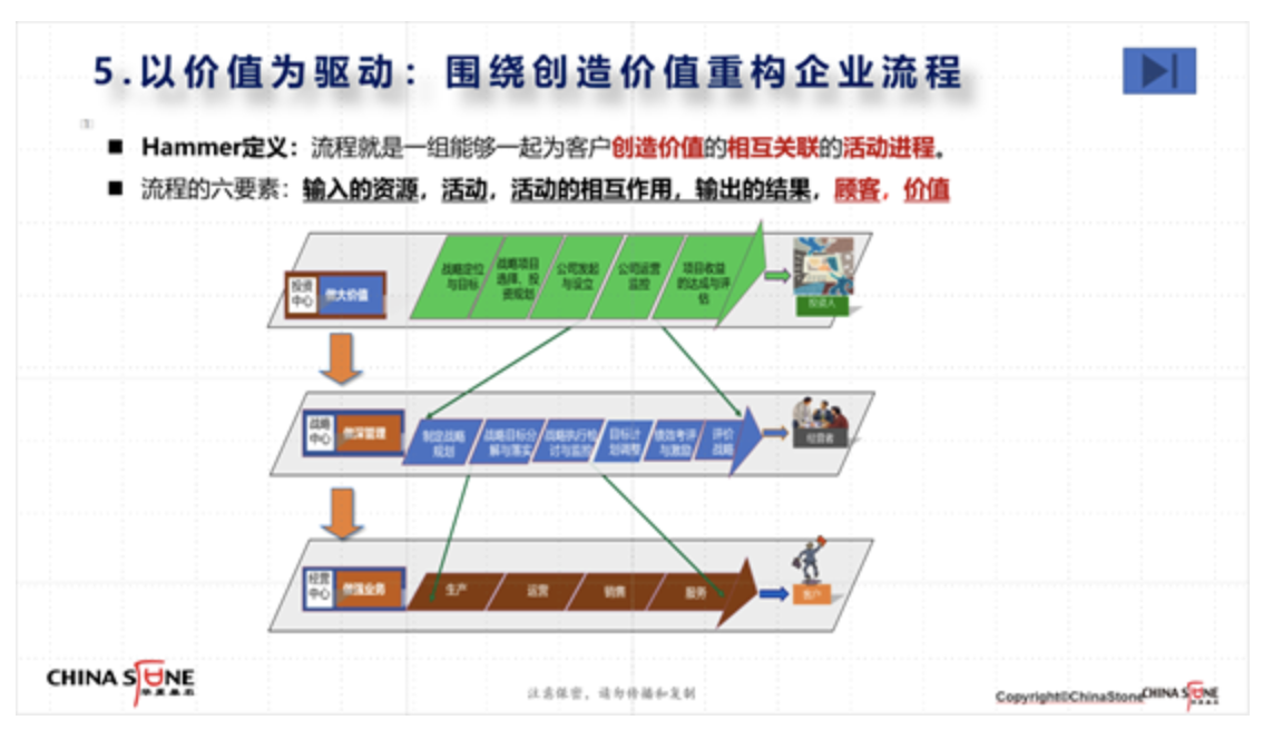 第五,以价值为驱动,围绕创造价值重构企业流程。
