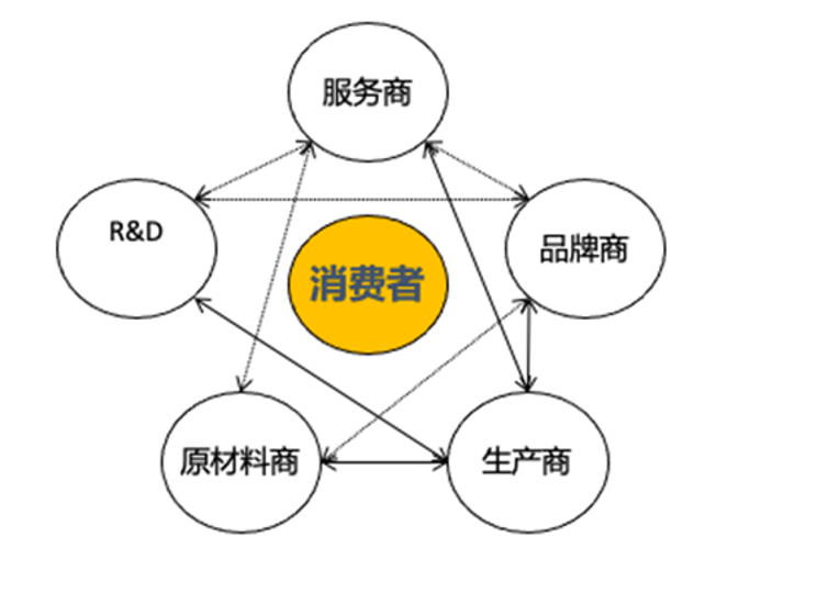 在这个过程中,有一个显著变化:价值链变了——从原来的链式价值创造,转变为以消费者为中心的竞争协作网络。