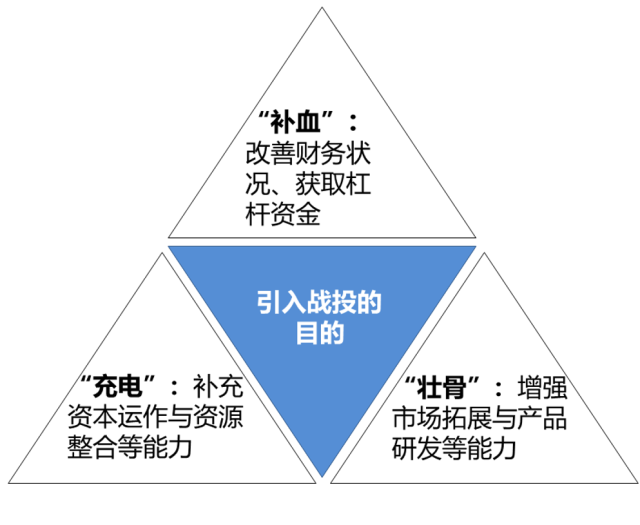 战投引入的初衷究竟是什么呢?除了混改的共同目的,即通过引入非公资本,改善法人治理,实现激发各方智慧、实施有效制衡以外,笔者认为,“补血”“充电”“壮骨”是战投引入的三个主要目的。