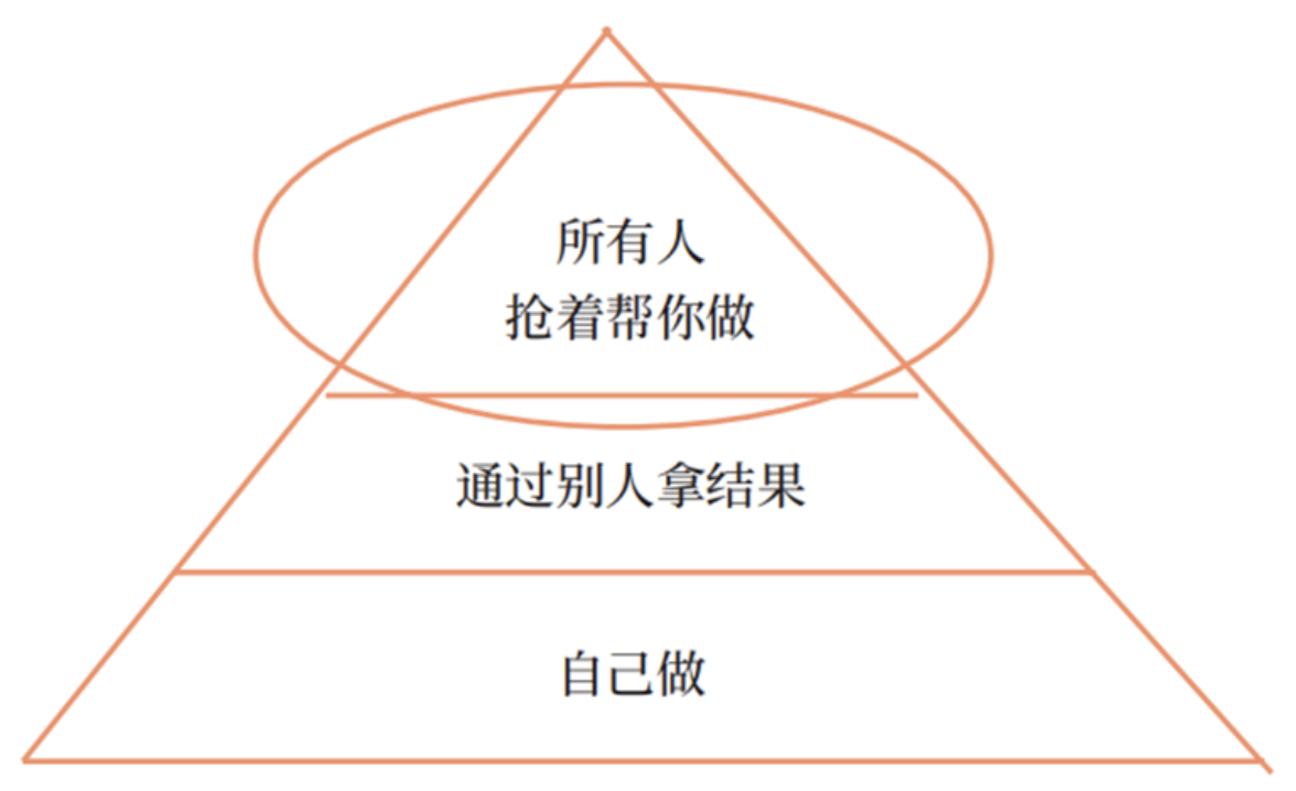 对于很多中小企老板,学会通过别人拿结果,这是一个比较难过的关。下图展示了领袖力的三个层次:自己做,通过别人拿结果,所有人抢着帮你做。领袖力在公司起的最好的作用就是第三个层次。