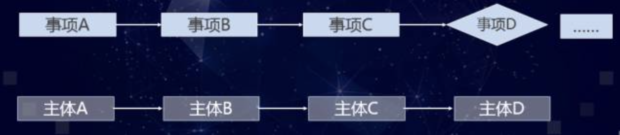 图3是流程连接,事项A、B、C,由不同的责任主体按照顺序分别做。最后画的是一个菱形,这是决策事项。