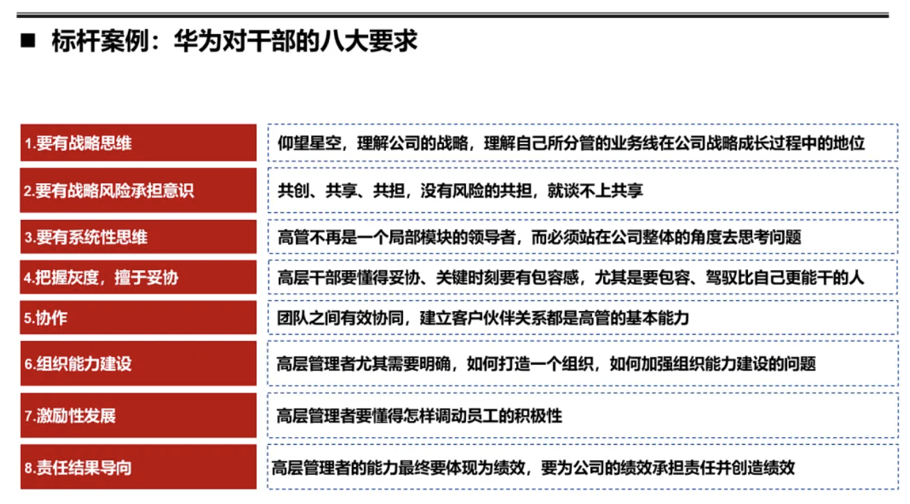 华为对干部的要求,尽管表述不一样,但基本的内核都差不多。