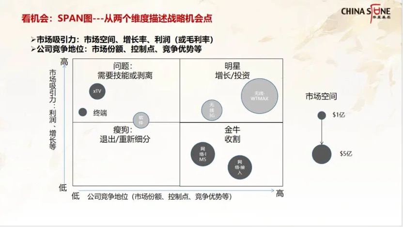 2.战略规划。主要解决战略方向与业务选择的关键问题,并可进一步拆解为四个细分维度。
