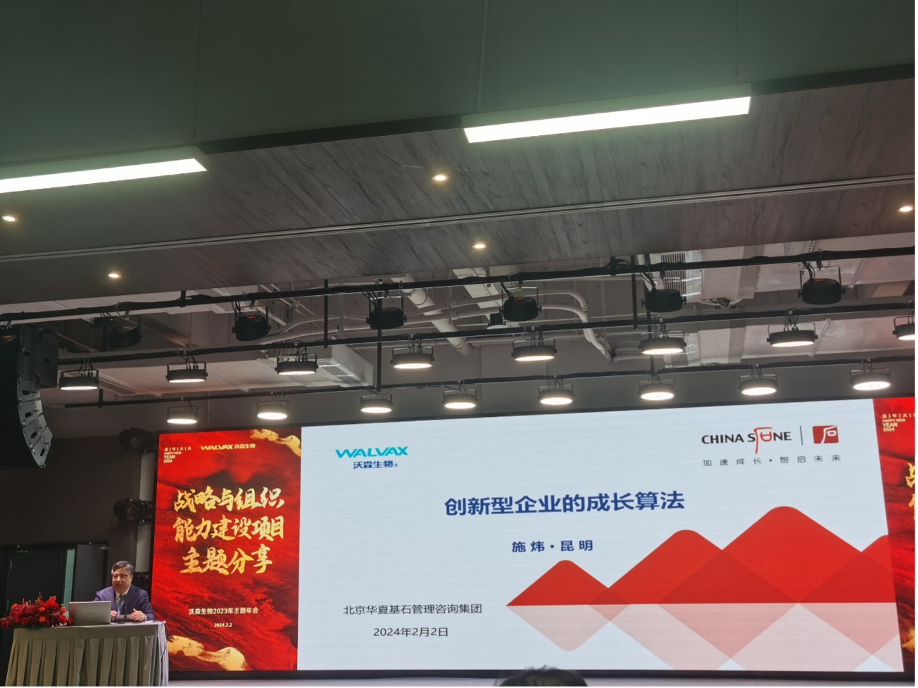 2024年2月2日,沃森生物与华夏基石的“战略与组织能力建设3年战略合作项目启动会在云南省昆明市云南沃森生物技术股份有限公司隆重举行。沃森生物董事长李云春,副董事长黄镇,总裁姜润生,华夏基石联合创始人施炜,华夏基石高级合伙人文富强,华夏基石特聘专家思贤等出席了本场活动;沃森生物管理层550余人在总部现场;2000余人同步线上参与会议。