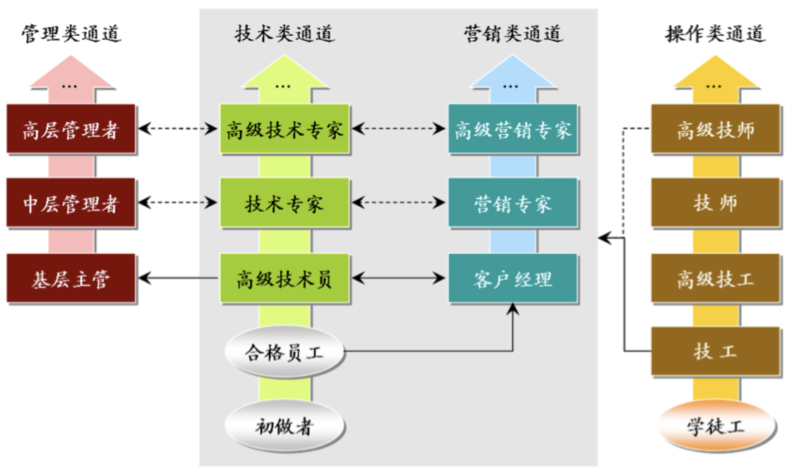 企业通过设定严格的任职资格标准,针对每一类员工划分不同的职业发展里程碑,并设计出不同通道之间的转换关系,牵引员工不断朝适合自己的更高级别任职资格去奋斗,避免职业通道不畅导致的“技而优则仕”现象,能够鼓励员工更加深入的钻研专业技术,为企业保留住大量的优秀人才。
