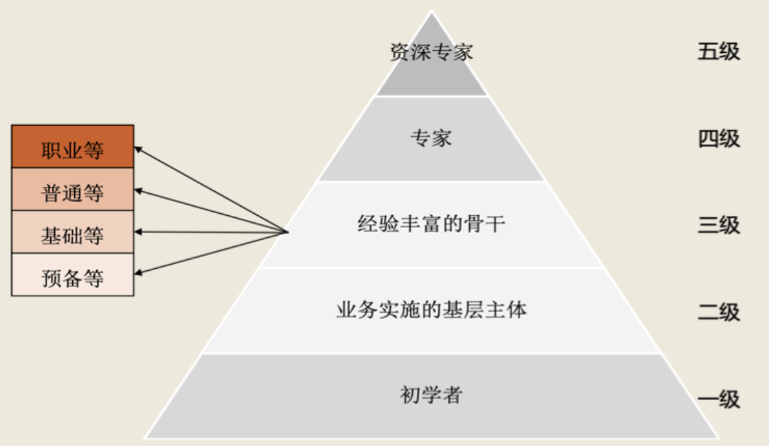 知识标准的开发也需要确认各任职资格等级的知识需求程度,不同任职资格等级所对应的知识要求有所不同。
